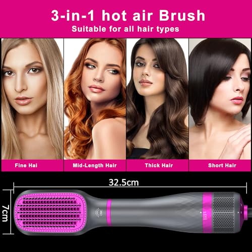 SevenPanda 3 in 1 One-Step Hair Dryer Brush & Hair Straightener Brush,Blow Dry Hair Brush/Hot Brush Hairdryer Brush/Brush Hair Dryer with Adjustable Temp. – for Styling Short, Medium & Long Hair