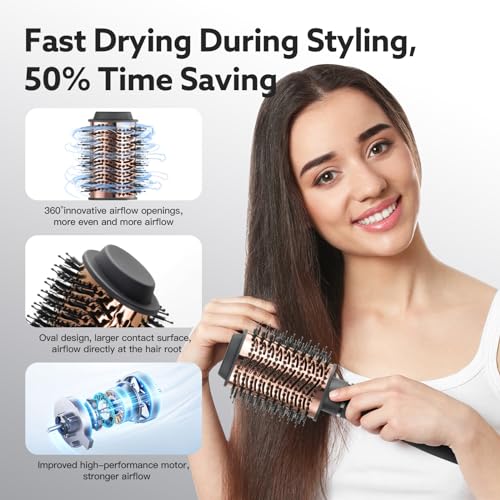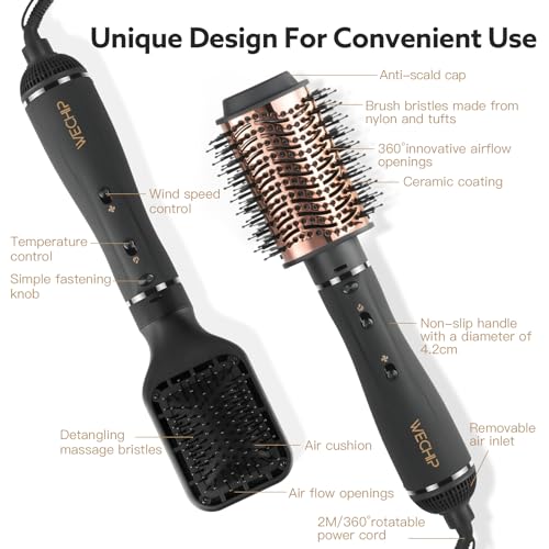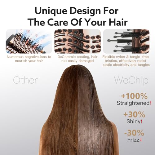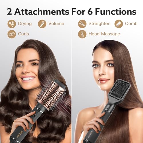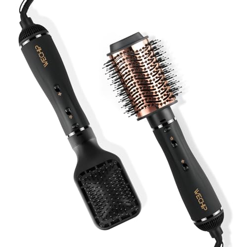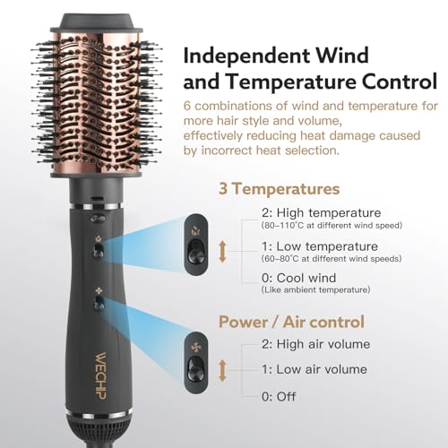 WeChip Hair Dryer Brush & Hair Straightener Brush, Hot Air Brush with Negative Ion, Ceramic Volumiser Hair Brush, Independent Temperature and Air Speed Control