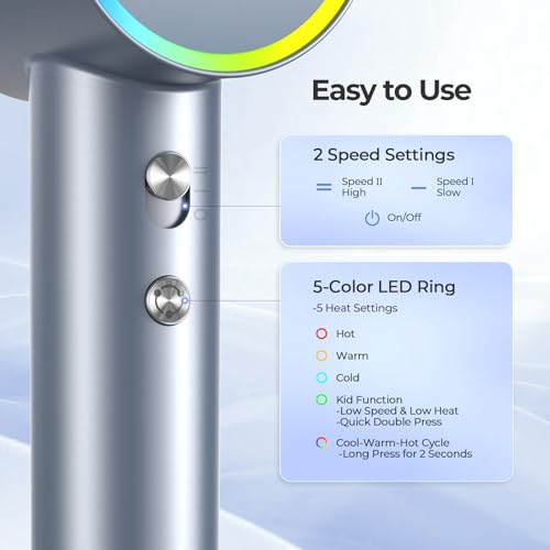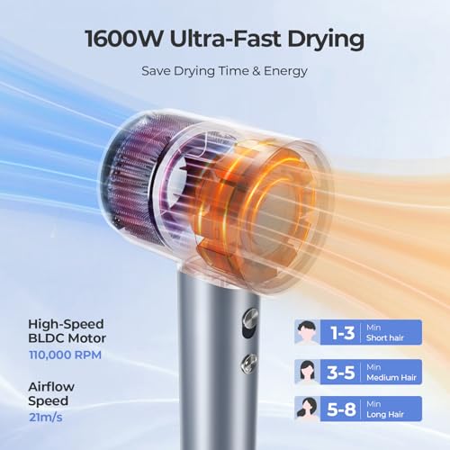 YASHE High-Speed Hair Dryer, 110,000 RPM Brushless Motor, Fast Drying 21m/s Hairdryers for Women & Men, 200 Million Negative Ionic Blow Dryer with Diffuser & Concentrator, 5 Heat 2 Speed, Blue