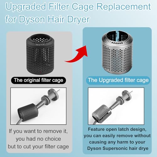 YTCHYYSK Upgraded Hair Dryer Outer Filter Cage Replacement with Cleaning Brush for Dyson Airwrap Accessories HD01 HD03 HD08 HD15 ensures your Dyson Airwrap stays at peak performance by protecting the internal components from debris and dust. Available in sleek black and vibrant pink, this replacement accessory maintains the longevity of your device while providing easy maintenance.