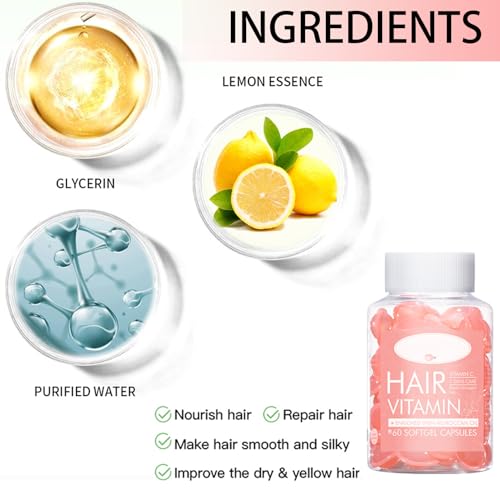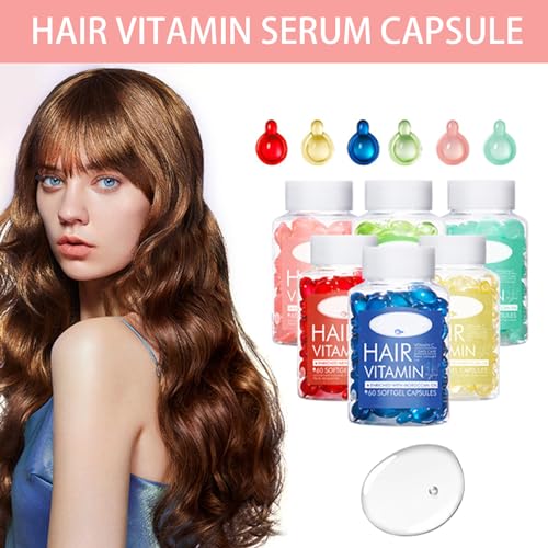 60PCS Capsules for Hair Care,Hair Vitamin Serum Capsule,Deep Conditioning Repair Improve Damaged Hair,Anti Frizz Hair Serum Oil (Pink)