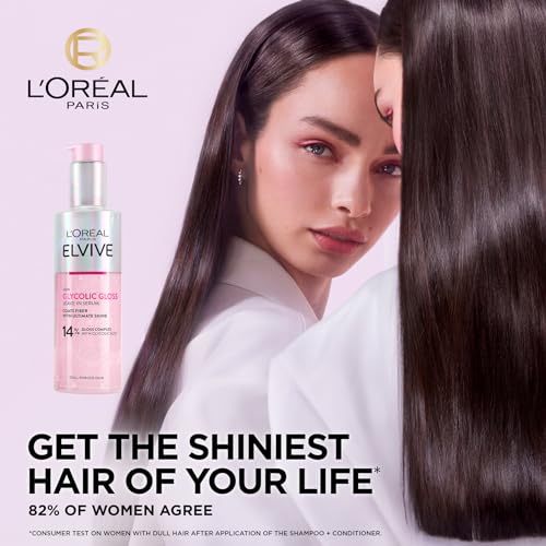L’Oreal Paris Elvive Glycolic Gloss Leave-In Serum, With Gloss Complex and Glycolic Acid, Fills and Seals Hair Fibres, For Long-lasting Smooth & Shiny Hair, Ideal for Dull Hair, 150ml