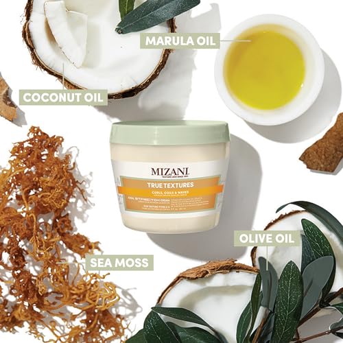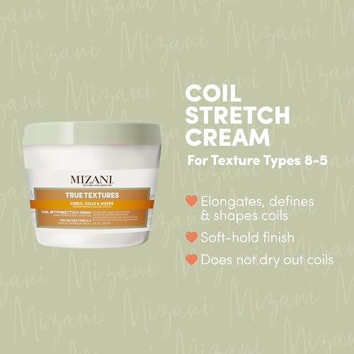 Mizani Coil Stretch Cream, Soft Hold Curl Shaping Hair Cream, Smoothing Yet Non-Drying, Formulated with Coconut, Olive and Marula Oils, True Textures, 250ml