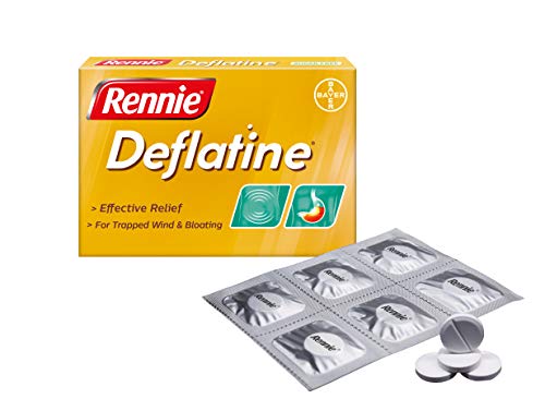 Rennie Deflatine, Trapped Wind and Bloating Tablets, Fast and Effective Heartburn Relief and Indigestion Relief, Sugar Free Mint, 1 Pack of 36 Tablets