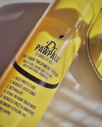Experience ultimate hair care with Dr Paw Paw 7 In 1 It Does It All Hair Treatment, a multifunctional 150 ml spray designed for all hair types. This revolutionary formula offers seven key benefits in one bottle: heat protection to safeguard your hair during styling, frizz reduction for a sleek look, detangling to ease brushing, adding shine for a glossy finish, improving hair texture, preventing split ends, and providing a light hold for manageable styles. Enriched with natural ingredients like papaya, olive oil, and coconut oil, it nourishes hair while enhancing overall health and appearance. For convenience, this treatment is also available in travel-friendly sizes, making it perfect for maintaining luscious locks on the go. Trust Dr Paw Paw’s expertise for a simple, effective solution to all your hair care needs.