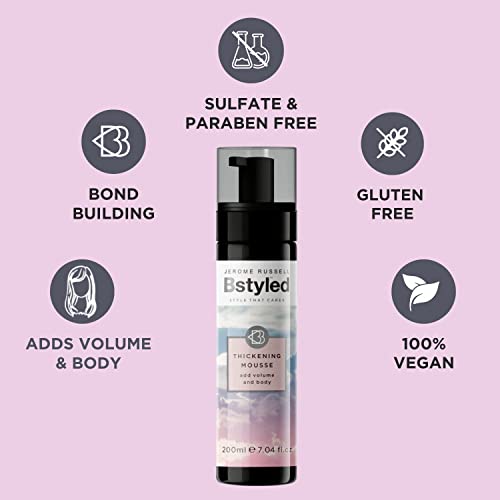 Jerome Russell BStyled Thickening Mousse – Hair Mousse for Volume & Lift, Hair Thickening Products for Women & Men with Heat Protection & Bond Building Technology, Vegan Hair Care, 200ml