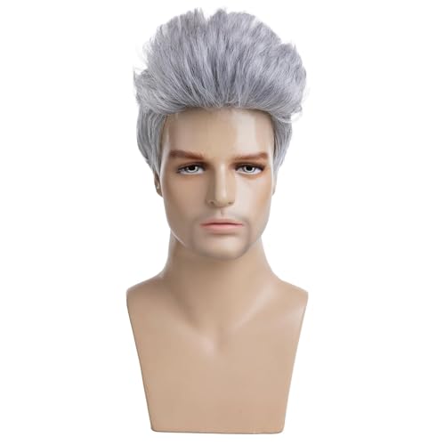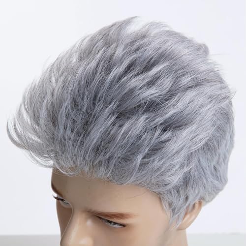 Mens Short Wig Grey White Cosplay Hair Wig Natural Synthetic Replacement Wig