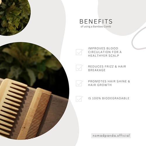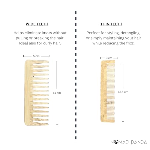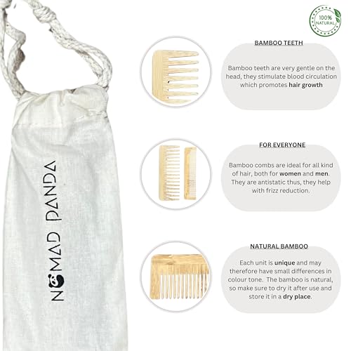 NomadPanda Bamboo Comb Set, 1 Wide Teeth Comb, 1 Fine Teeth Comb, Cotton Coupling, Wide Teeth Comb Curly Hair, Woman Comb, Man Comb, Hair Products, Travel Products, Wooden Comb Women, Travel Comb