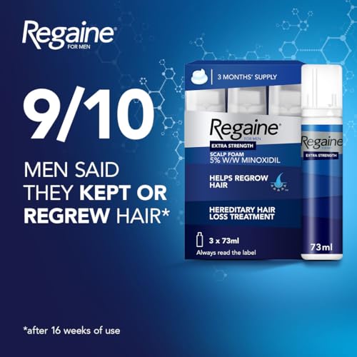 Experience noticeable results with Regaine For Men Hair Regrowth Foam 3 x 73ml (Packing May Vary). This advanced formula contains Minoxidil, a potent ingredient clinically proven to help in hair regrowth. The pack includes three 73ml cans of foam that are simple to apply directly to the scalp, helping to reactivate shrunken hair follicles and encouraging thicker and fuller hair growth. The product is designed for men who want to take control of their hair loss and achieve visible results. Suitable for daily use, it’s perfect for integrating into your morning and evening routines. Please note that packaging may vary, but the efficacy remains consistent.