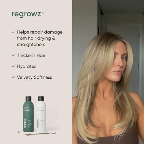 Regrowz Hair Thickening Shampoo 225ml & Hair Volume Conditioner 200ml – Biotin Hair Growth Shampoo and Conditioner for Women & Men – DHT Blocker & Sulphate Free – Restore Stronger & Healthier Hair