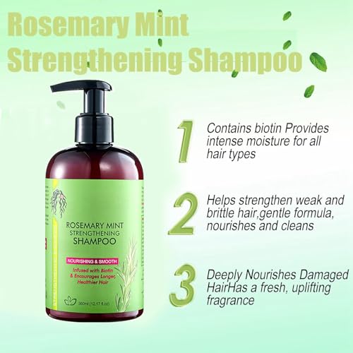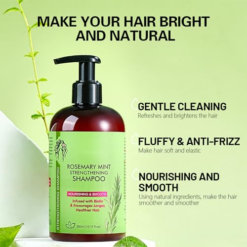 Rosemary Mint Strengthening Shampoo, Rosemary Shampoo for Hair Growth, Moisturizes Softens Hair, Repairing and Nourishing Scalp, Hair Care Shampoo for Hair Loss Women Men – 360ml