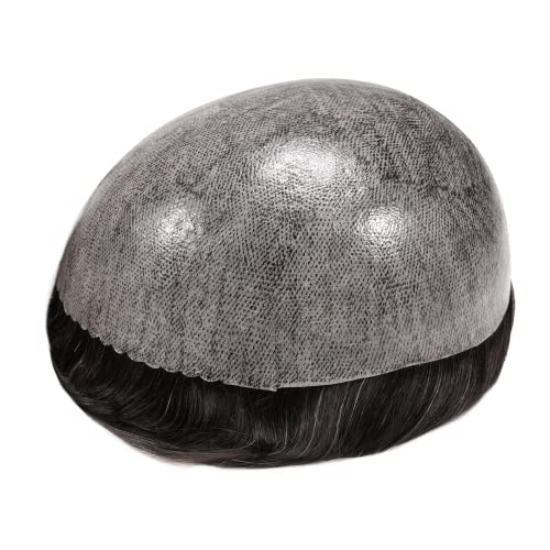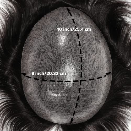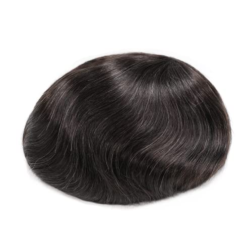 Zakya Hair System for Men Thin Skin Men’s Toupee 100% Human Hair Men’s Hairpieces 8×10 Inches Base Size Hair Replacement System for Men (Off Black 1B#+10% Grey Hair)