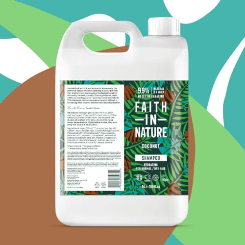 Faith In Nature Organic Coconut Shampoo, Hydrating for Dry Hair & Scalp, Vegan & Cruelty Free, No SLS, Silcones or Parabens, 5L Refill Pack