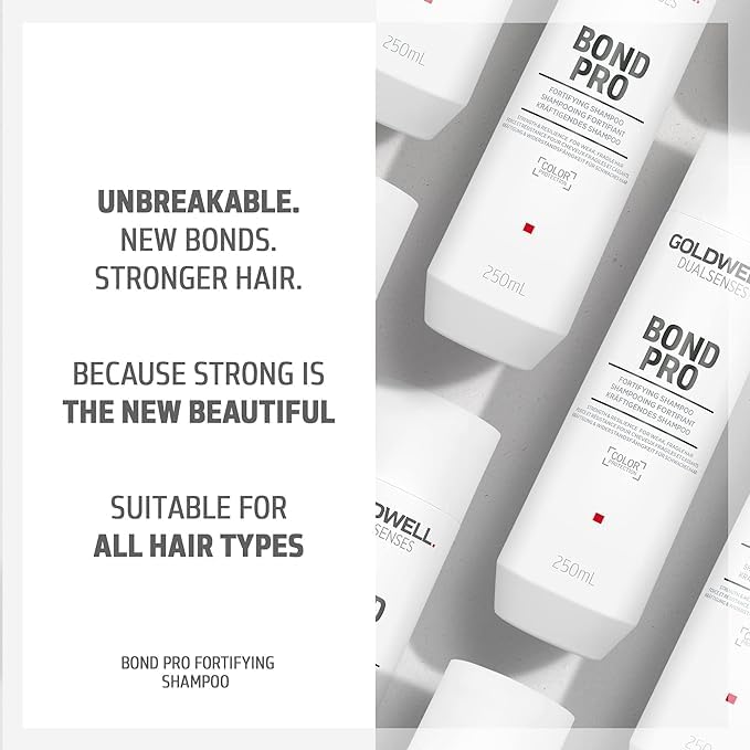 Goldwell Dualsenses Bond Pro, Fortifying Shampoo for Weak and Fragile Hair, is an expert formulation that provides intensive care and support for fragile hair. With its advanced microPROtec complex and Inter-Amino-Bond-Builder, this shampoo fortifies hair from the inside out, boosting its strength and elasticity. Ideal for chemically treated and over-styled hair, it aids in reducing breakage and splitting, resulting in smoother, shinier hair. Its gentle cleansing action is perfect for daily use, ensuring hair remains nourished, hydrated, and resilient. Experience visibly healthier hair that feels stronger and looks more radiant with each wash.