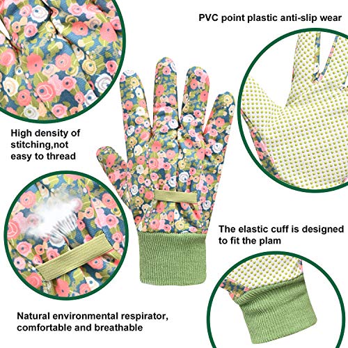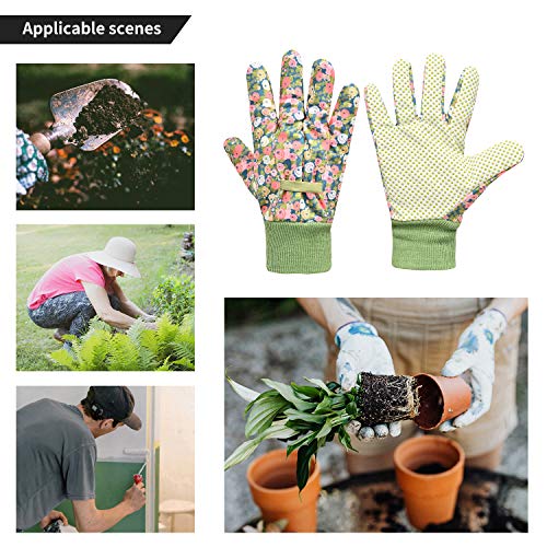 Hanzapor Gardening Gloves for Women 2 Pairs, Ladies Gardening Gloves Comfortable Breathable Non-Slip Flexible,Garden working Gloves with Soft PVC Dots (Small/Medium,Green)