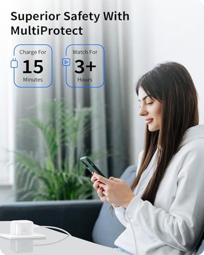Experience rapid charging with the iPhone 15 Charger, [MFi Certified]. Its 20W USB C plug ensures fast charge and comes with a 1.8M iPhone 15 cable. Compatible with iPhone 15 Pro, 15 Pro Max, 15 Plus, and iPad series.