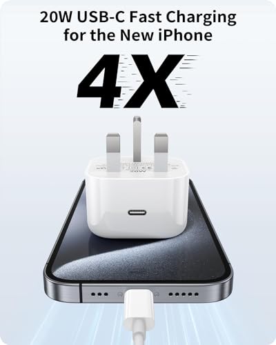 ![iPhone 15 Charger, [MFi Certified] 20W USB C Plug Fast Charge and 1.8M iPhone 15 Charger Cable PD3.0 Power Adapter UK Wall Charging PowerPort for iPhone 15 Pro/15 Pro Max/15 Plus, iPad Pro/Air/Mini - Image 4](https://m.media-amazon.com/images/I/41rz-AbVylL.jpg)