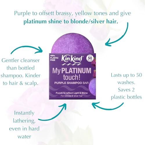 KinKind Purple Shampoo Bar – My PLATINUM Touch! Solid Shampoo Bar for Blonde, Silver & White Hair | Natural Shampoo Bar, Travel Shampoo Bars for Hair UK | Up to 50 Washes – Vegan
