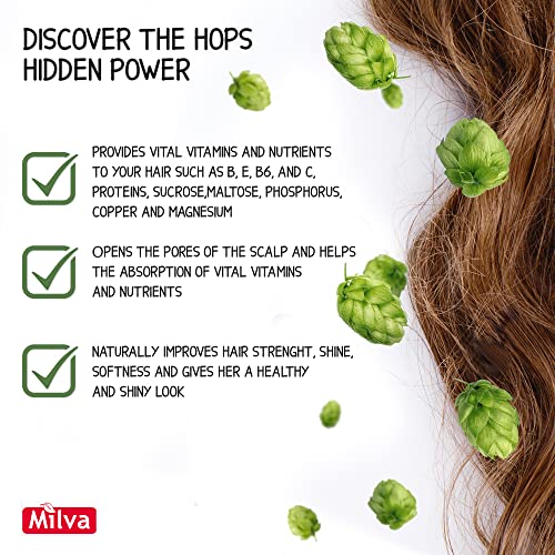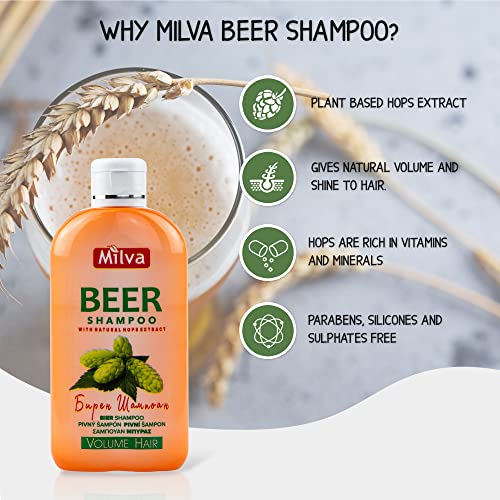Milva Beer Shampoo for Shiny Hair with Hop Extract – Volumising Shampoo for Thinning Hair – Anti-Hair Fall Shampoo – Thickening & Hydrating Shampoo – Rehydrates & Gives Strength & Bounce, 200ml