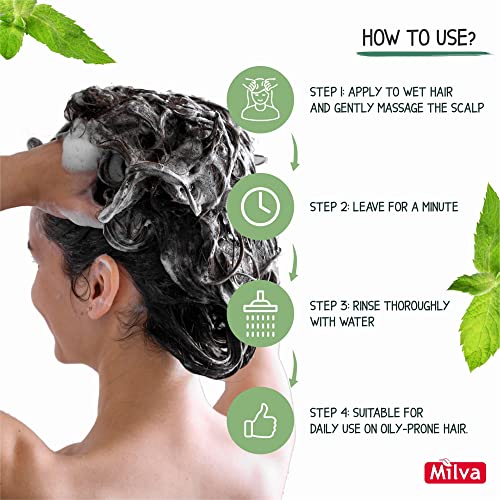 Milva Nettle Shampoo for Greasy Hair – 200 ml Natural Clarifying Shampoo for Oily Hair and Roots – Greasy Hair Remedy, Sulphate Free Shampoo Oily Scalp – Sebum Control, Oil Reducing & Volume Shampoo