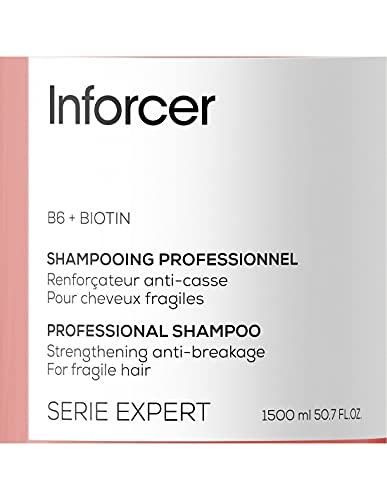 SE Inforcer Shampoo 1500ml Serie Expert is a professional hair care product designed to strengthen and repair hair. Ideal for those with weak, fragile, or damaged hair, this shampoo is enriched with Biotin and Vitamin B6, which nourish and fortify each strand from root to tip. The 1500ml size provides long-lasting value, making it perfect for both home and salon use.