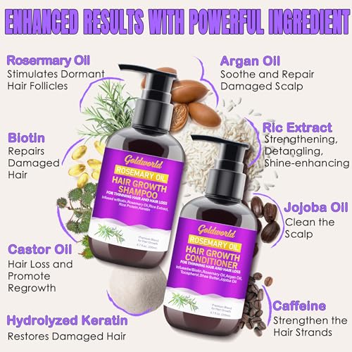 Shampoo and Conditioner Sets for Hair Growth,Sulphate Free Hair Shampoo w/Scalp Massager,Rosemary Oil Biotin Argan Castor Oil Keratin Rice Water Hair Thickening Products for Women Hair Loss Treatment