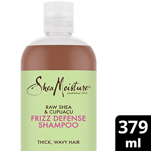Shea Moisture Raw Shea & Cupuacu Frizz Defense Shampoo, with Passiflora and Pistachio Oils, to Cleanse and Smooth Thick, Wavy Hair 379 ml