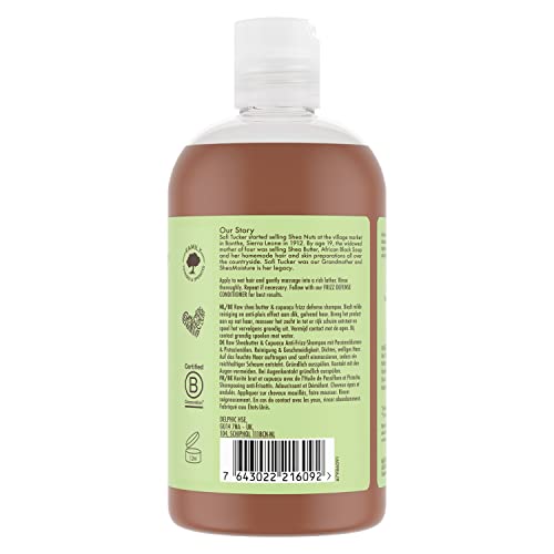 Discover the magic of Shea Moisture Raw Shea & Cupuacu Frizz Defense Shampoo, specifically formulated for thick, wavy hair. This exquisite shampoo blends raw shea butter with cupuaçu for profound hydration. Enhanced with passiflora and pistachio oils, it effectively reduces frizz and adds a silky sheen. With regular use, hair becomes more manageable, smoother, and healthier. Ideal for daily use, it comes in two practical variants: 379 ml and 500 ml, catering to different needs without compromising on exceptional quality. Embrace natural, frizz-free beauty with Shea Moisture Raw Shea & Cupuacu Frizz Defense Shampoo.