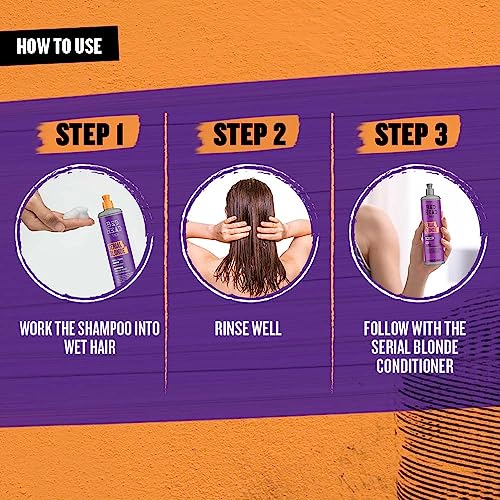 Give your blonde hair a fresh, vibrant look with Tigi Bed Head Serial Blonde Purple Toning Shampoo. This shampoo neutralises brassy tones and revives bleached hair, making your blonde look brighter and cooler.