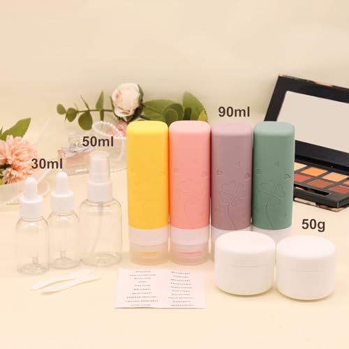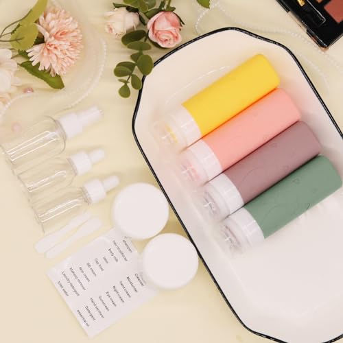 Travel hassle-free with our 12 Pcs Travel Bottles Set for Toiletries. These silicone, leak-proof bottles are perfect for your shampoo, conditioner, and lotion. TSA approved and squeezable, they come with a clear travel toiletry bag for ultimate convenience.