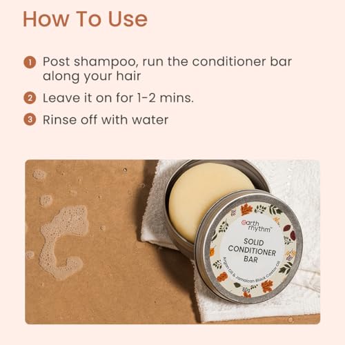 Earth Rhythm Solid Conditioner Bar, Natural, Plastic Free – 80 GM (Argan Conditioner Bar) comes in two different variations, catering to specific hair needs. One variation is formulated for dry and damaged hair, enriched with shea butter and cocoa butter for extra nourishment. The other variation targets normal to oily hair, incorporating tea tree oil to help balance scalp oils and control dandruff.