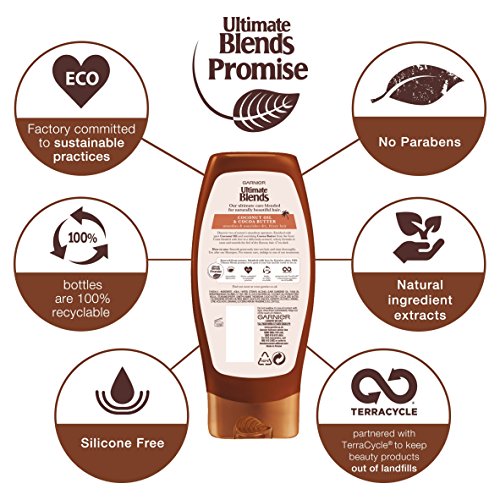 Garnier Ultimate Blends The Sleek Restorer Conditioner transforms frizzy, dry hair into sleek, smooth tresses. Infused with coconut oil and cocoa butter, this nourishing conditioner tames flyaways and leaves hair irresistibly soft.