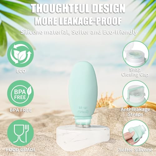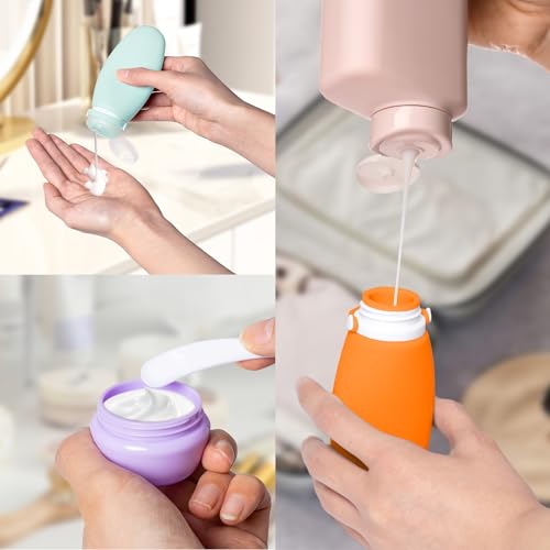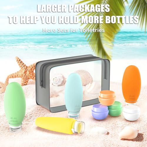 Hmeuest Travel Bottles for Toiletries, 4 Pack Silicone Travel Bottles Set with Clear Zipper Toiletry Bag, Leakproof Refillable Squeezable Travel Size Containers for Shampoo, Conditioner