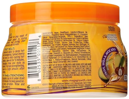 Mega Growth Anti-Breakage Strengthening Deep Conditioner, 15 oz., offers an intensive treatment specially designed to repair and nourish fragile hair. Enriched with a blend of natural ingredients, including shea butter, avocado, and olive oil, this deep conditioner penetrates deeply into the hair shaft to promote elasticity and reduce breakage. The original formula is perfect for those dealing with regular hair damage, while the extra-strength variation is tailored for more severe cases, providing maximum protection and restoration. Both versions are infused with a unique Protein Complex to fortify hair structure, leaving it stronger, smoother, and visibly healthier. Ideal for all hair types, this conditioner revitalises your locks, giving them a stunning shine and renewed strength.
