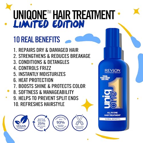 Revitalise your hair with UniqOne Revlon Hair Treatment. Infused with a serene vanilla and jasmine fragrance, this 150 ml leave-in conditioner repairs, detangles, controls frizz, and adds effortless style. Enjoy professional multi-benefit hair care in one simple step.