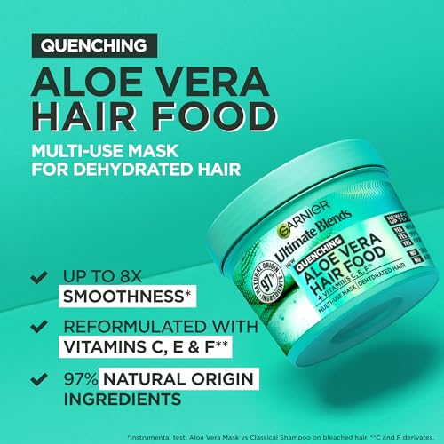 Garnier Hair Food Multi-use Hair Treatment Mask, Offers 8x More Hydration, Ideal for Dehydrated hair, No Silicones, Vegan Formula, Aloe Vera, Ultimate Blends, 400ml