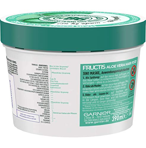 Garnier Hair Mask, Aloe Vera, Hairfood Moisturising 3-in-1 Mask, Care for Smooth Hair, Fructis, 390 ml
