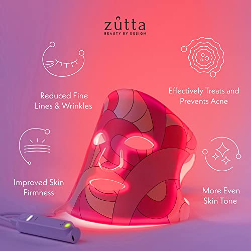 LED Face Mask Light Therapy – By Zutta – 3 Colour Settings Light Therapy – Anti Acne Blue Light – Anti-Ageing Red light – Skin Rejuvenation & Wrinkle Reduction – Lightweight Portable Silicone