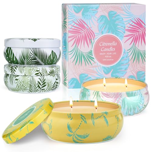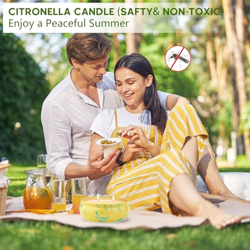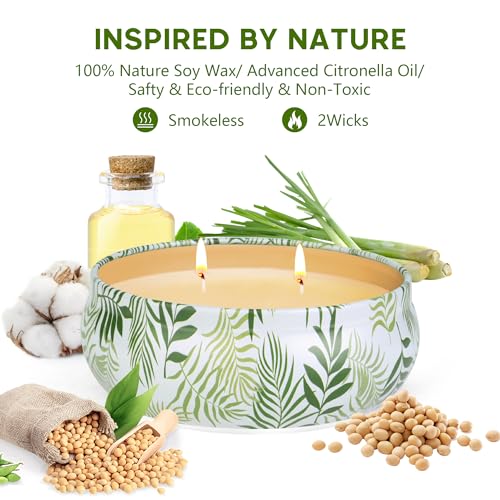 Citronella Candles Outdoors, 2-Wick 4x12oz Citronella Garden Candles with 240-Hour Smokeless Burn Time Natural Soy Wax Lemo Candle Garden Bulk for Indoor&Outdoor, Summer Camping