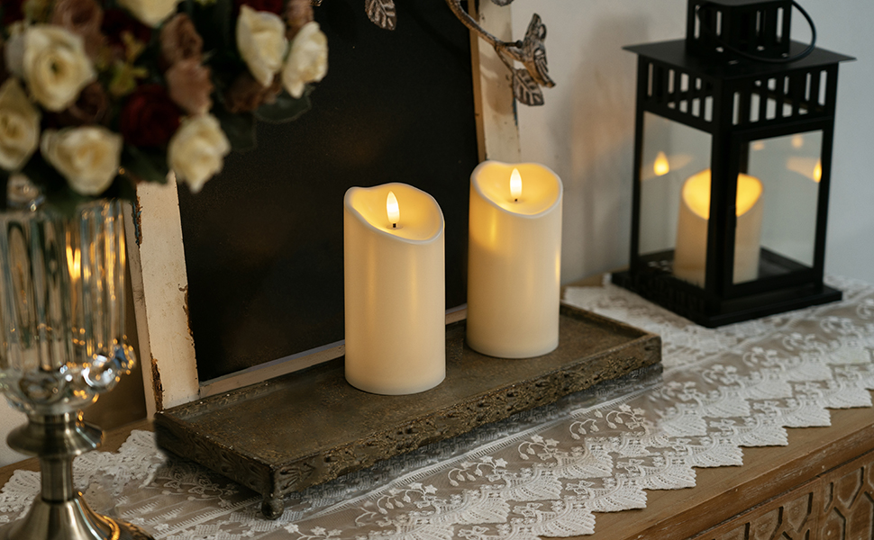 Homemory 6”x3” Outdoor Waterproof Flameless Candles, LED Candles, Battery Operated Candles with Remote Control and Timer, Electric Fake Plastic Pillar Candles, Ivory White, Set of 2