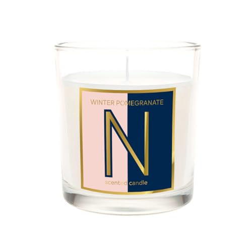 KeiCo Personalised Alphabet Letter Candles with Gift Box – Winter Pomegranate Scented 140g Long Burn – A-Z Letters for Personal Birthday Gifting (Letter N)
