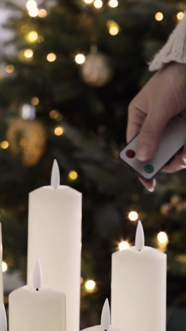 Lights4fun Set of 9 Indoor Battery Operated TruGlow® LED Flameless Flickering Flame Pillar Candles Real Wax with Remote Control & Timer Christmas Home Wedding Decoration – the perfect blend of elegance and convenience. These real wax candles feature flickering LED flames, providing a realistic and safe alternative to traditional candles. Ideal for creating a warm and inviting atmosphere for Christmas celebrations, weddings, or any special occasion.