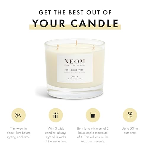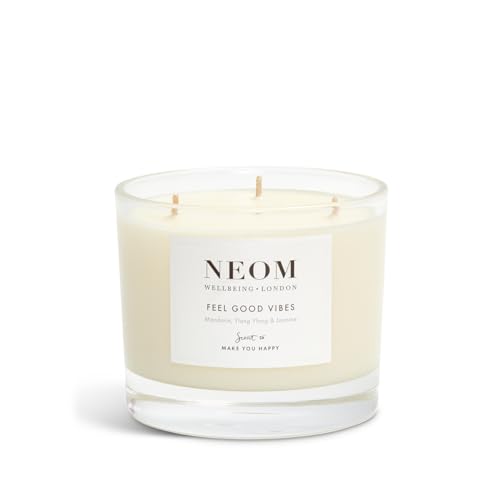 NEOM- Limited Edition Feel Good Vibes Candle (3 Wick) | Ylang Ylang, Mandarin & Jasmine | Mother’s Day | Gift – This luxurious candle combines the soothing scents of ylang ylang, the zesty freshness of mandarin, and the floral elegance of jasmine to create a harmonious and uplifting atmosphere. Perfect for any occasion, this candle is thoughtfully crafted to enhance relaxation and well-being.