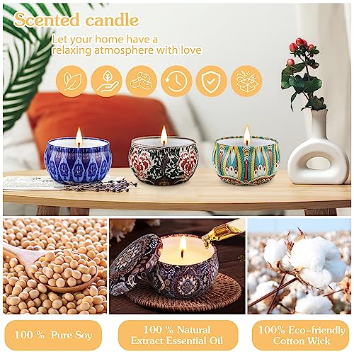 Scented Candles Gift Set 12 Pack Soy Wax Candles in Decoration Tin with Essential Oil Relaxing Fragrance for Room Aromatherapy Gifts for Women Mum Friends Wife Birthday Mother’s Day Christmas
