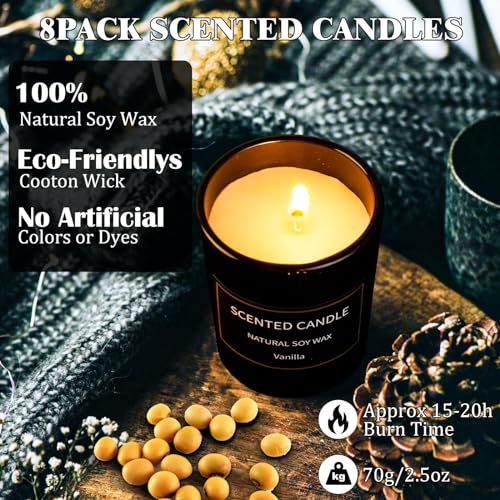 Scented Candles Gift Set for Women/Men, 8 Pack Stress Relief Candles Scented, Natural Soy Wax Aromatherapy Candle Gifts for Mom/Dad, Long Lasting Candles, Birthday Gifts for Her, Gifts for Fathers