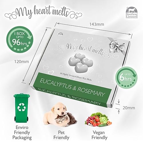 Eucalyptus Rosemary Wax Melts – 16 x 5g Strong Eucalyptus Rosemary Fragrance Wax Melts in an Elegant Presentation Gift Box Spotless Leopard Birthday Gift – Made in UK