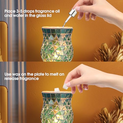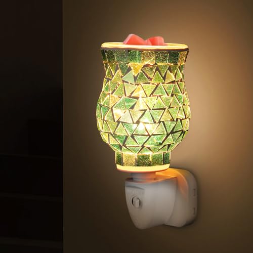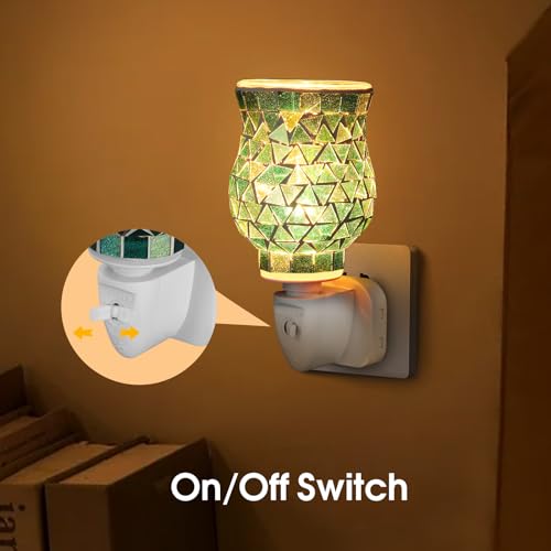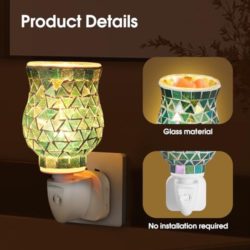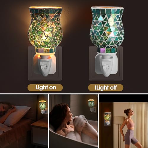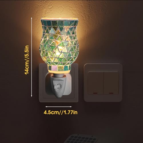 Glass Plug in Wax Melt Burner, Electric Mosaic Oil Burner & Wax Burner, Night Light Aroma Lamp for Home Bedroom Living Room Office Decor (Blue Green)