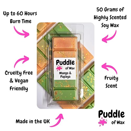 Puddle of Wax – Mango & Papaya Soy Wax Melt Snap Bar – 50 Grams – Vegan Friendly – Made in the UK