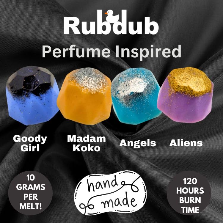Rubdub Extra Large Luxury Designer Perfume Wax Melts – Chrome Box – 12 x 10 Gram Melts -120 Hours burn time – Wax Melt Gift Box – Strong scented wax melts – Wax melt gift set