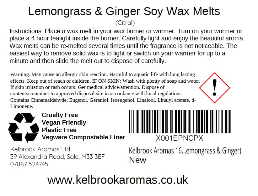 Transform your space with the refreshing and zesty fragrance of our Lemongrass and Ginger Wax Melts. Specially designed for fragrance enthusiasts, this 16-pack offers strong, enduring scents that uplift your surroundings. Each melt is passionately crafted in the UK, ensuring premium quality and environmental consciousness. Our commitment to sustainability means these wax melts are completely plastic-free and vegan, making them the perfect choice for eco-conscious consumers. Whether you’re seeking a moment of relaxation or a vibrant atmosphere, our Lemongrass and Ginger Wax Melts deliver a rejuvenating experience with every use. Indulge in the delightful harmony of lemongrass and ginger and embrace a fragrant, guilt-free way to freshen your home.